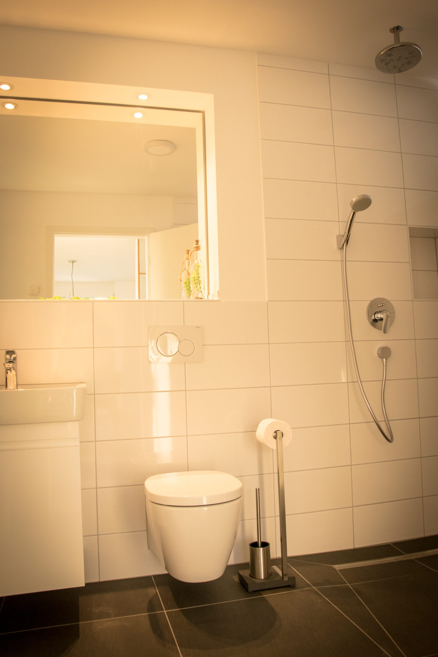 Das moderne Badezimmer ist mit einer großzügiger Dusche (1,20m x 2,00m) ausgestattet .